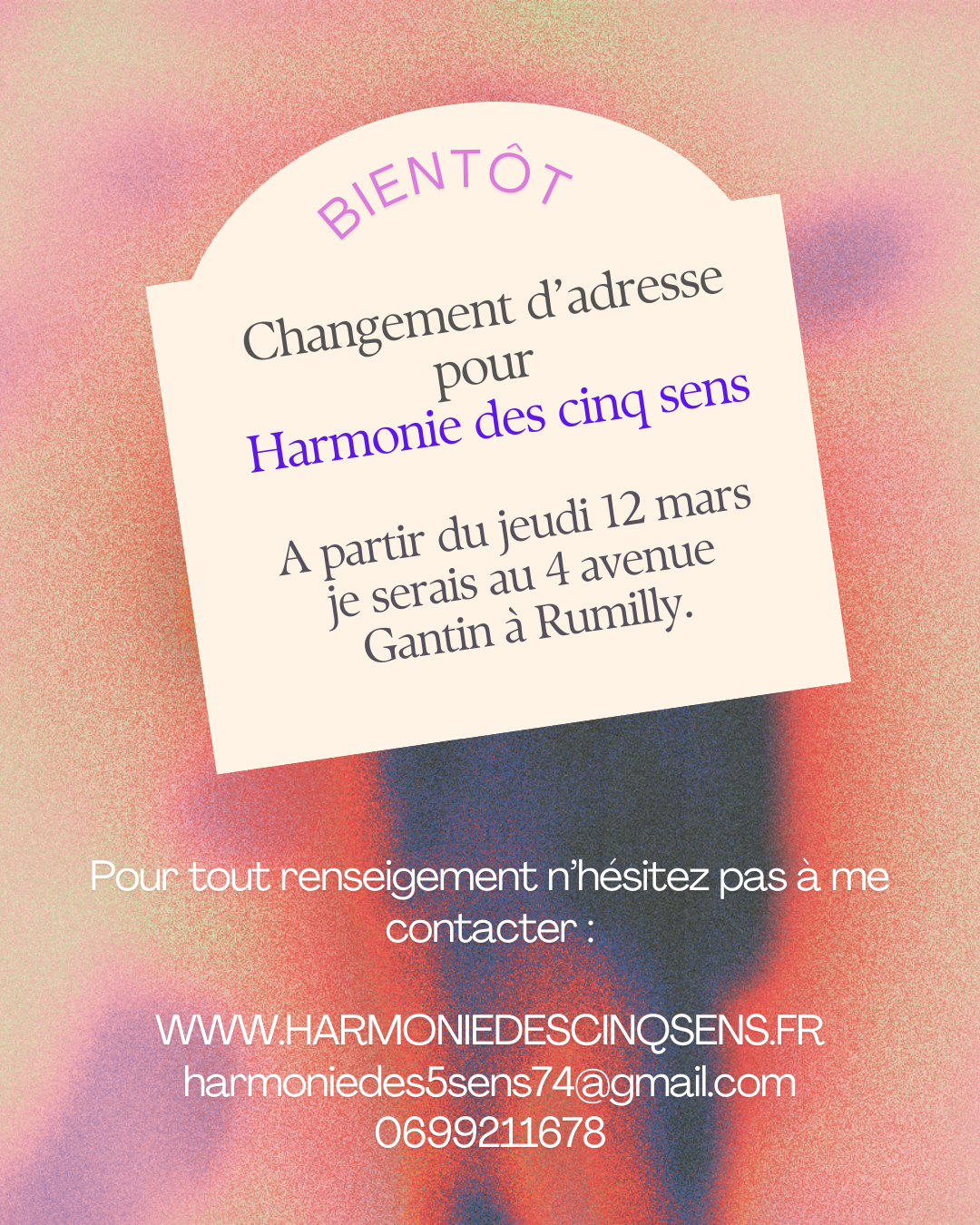 A partir du 12 mars 2026, je serai installé au 4 avenue Gantin à Rumilly.
